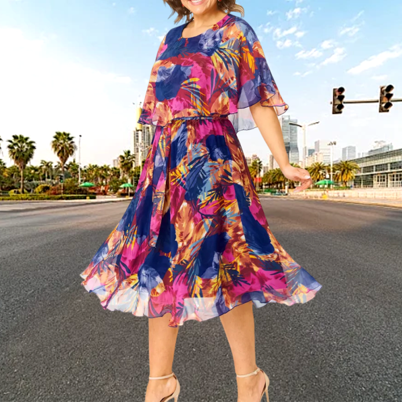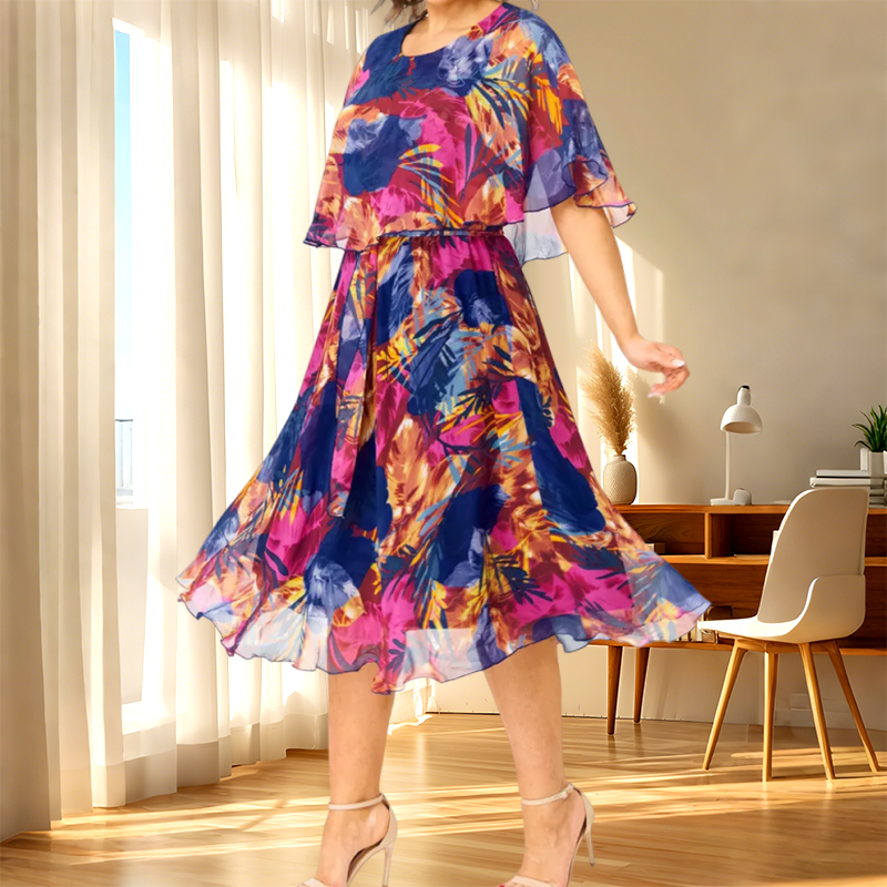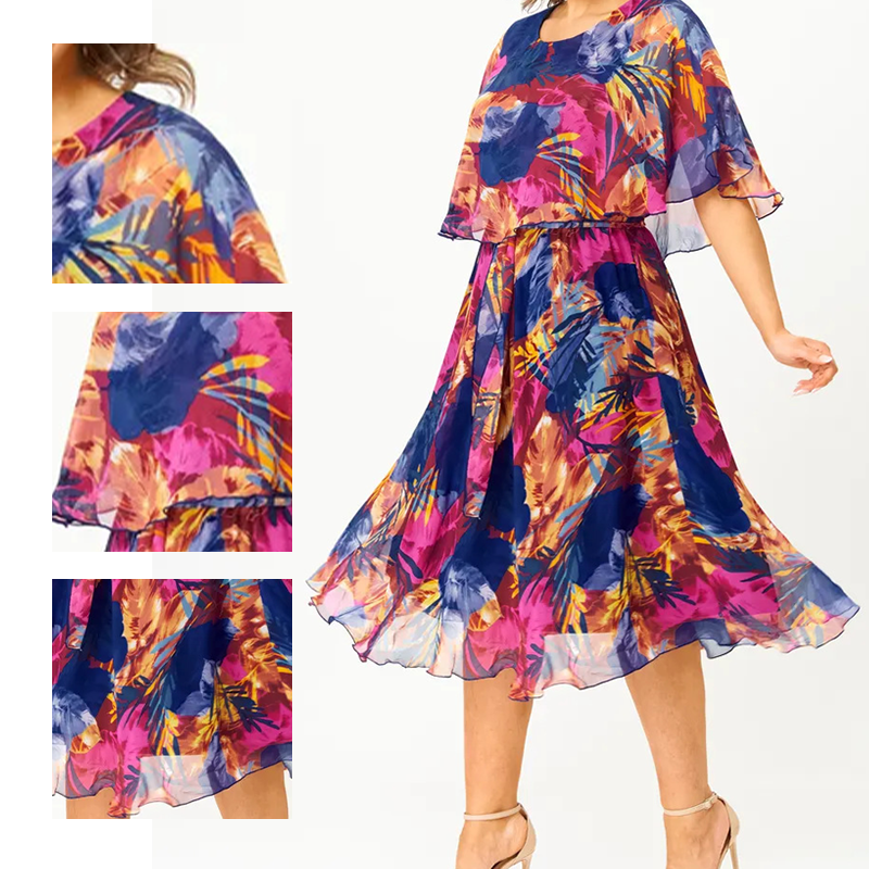 Пакетът включва 1* Елегантна дамска рокля с половин ръкав с цветен печат