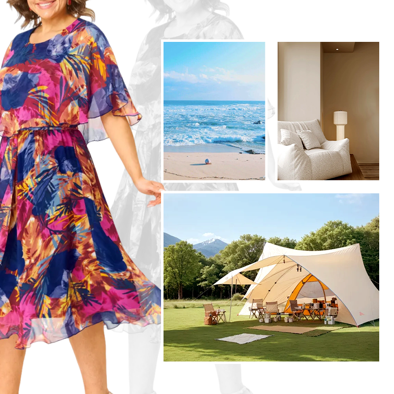 Дишаща, лека материя за всеки ден - Роклята е изработена от дишаща, лека материя, която е хладна и удобна за носене. Тя тече, без да прилепва към тялото, което подобрява комфорта и позволява на роклята да се развява естествено. Идеална за топли или влажни условия, тази материя намалява тежестта, като същевременно поддържа лесното движение.