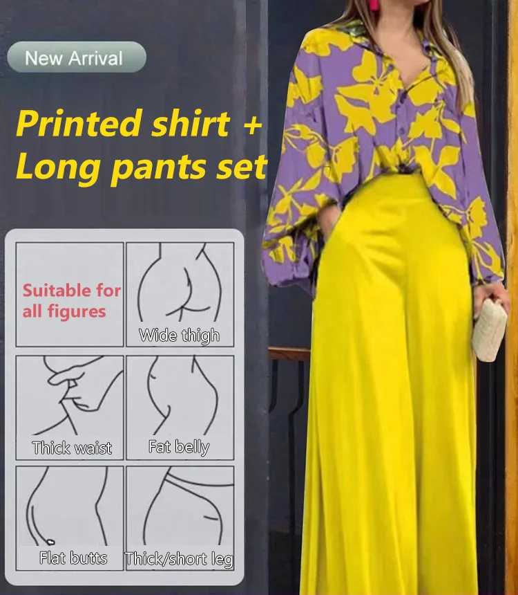 ✔ Характеристики: летни тоалети от две части за жени, овърсайз, дълги ръкави за буфан, риза с копчета, модна блуза с флорален печат, еластични широки панталони, висока талия, отворена предна част, свободна форма, солиден комплект дълги панталони, ежедневна пижама.