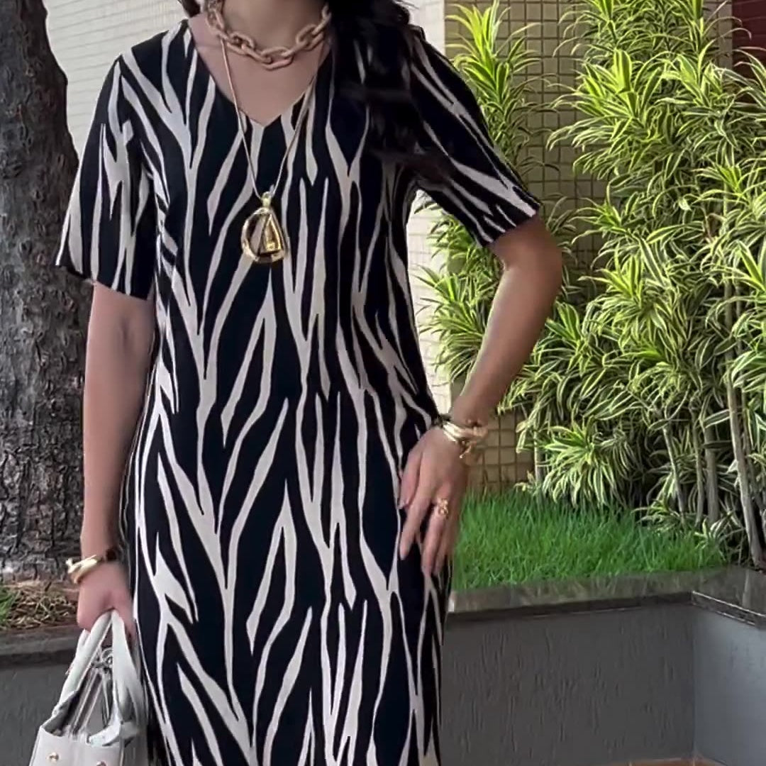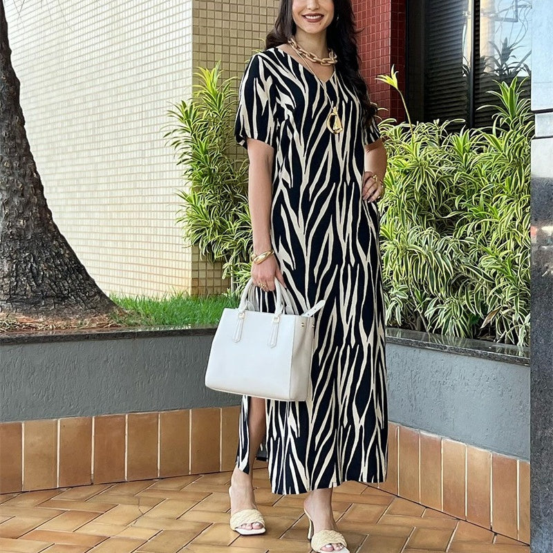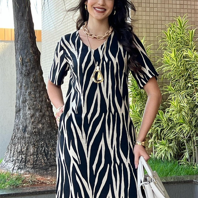 Пакетът включва: 1* Женски печатни V-образно деколте рокля със страничен разрез