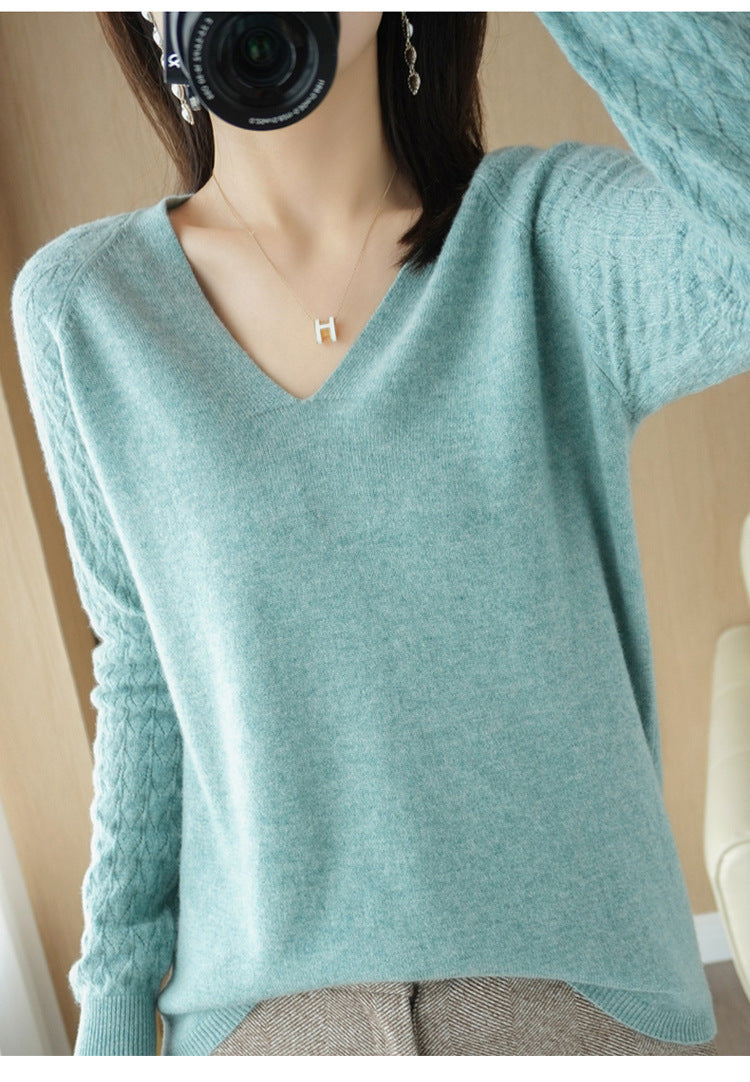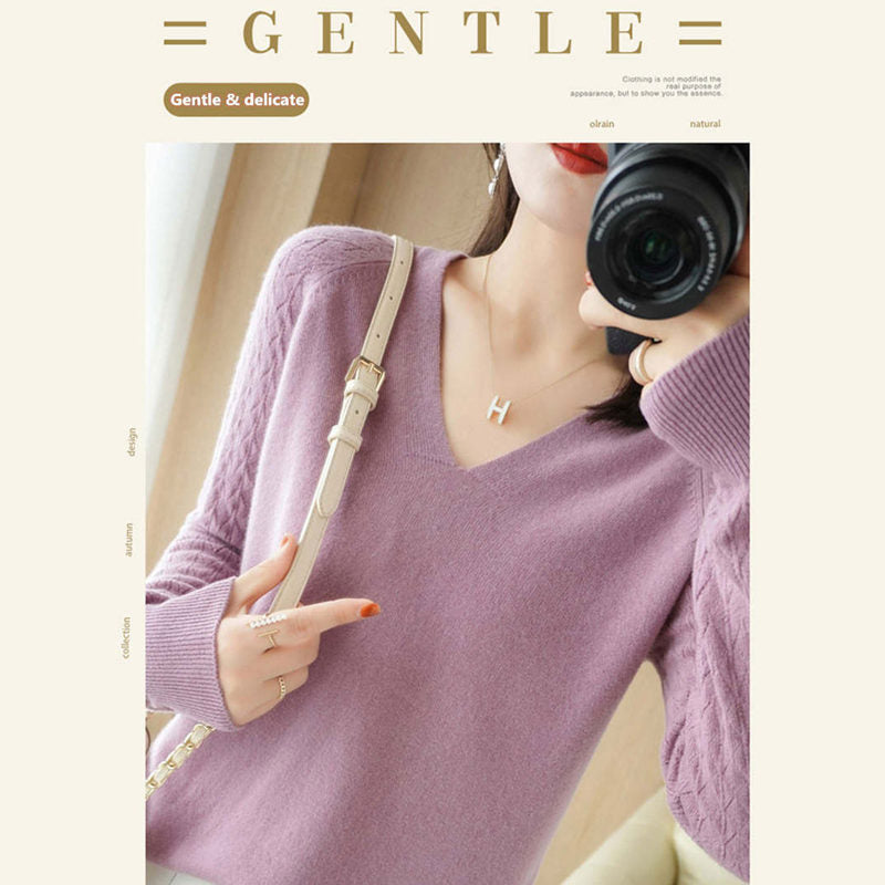 1 x Дамски плетен пуловер с тънка форма и заострено деколте