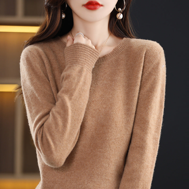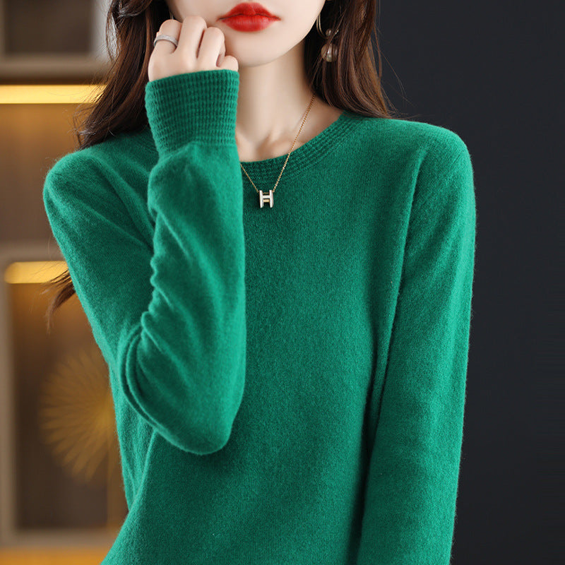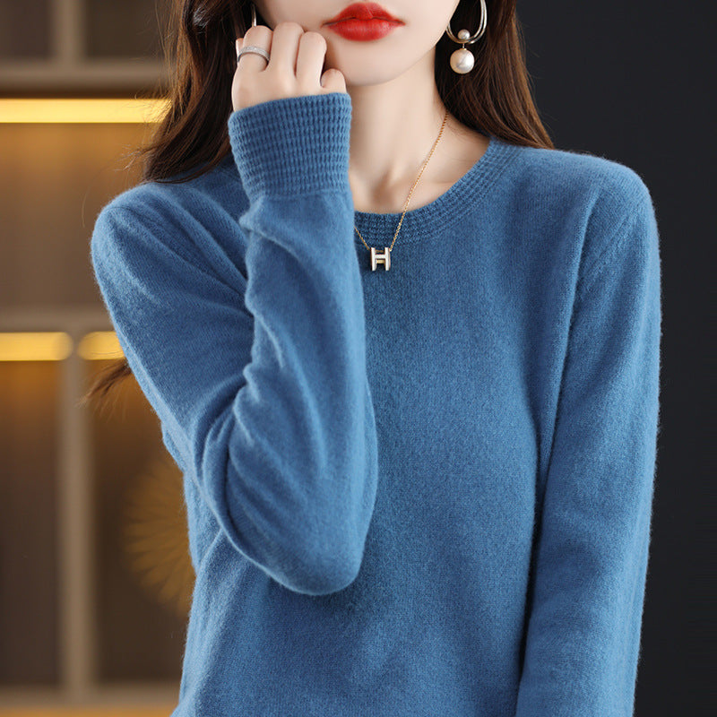 1 x Дамски пуловер с кръгло деколте в плътен цвят