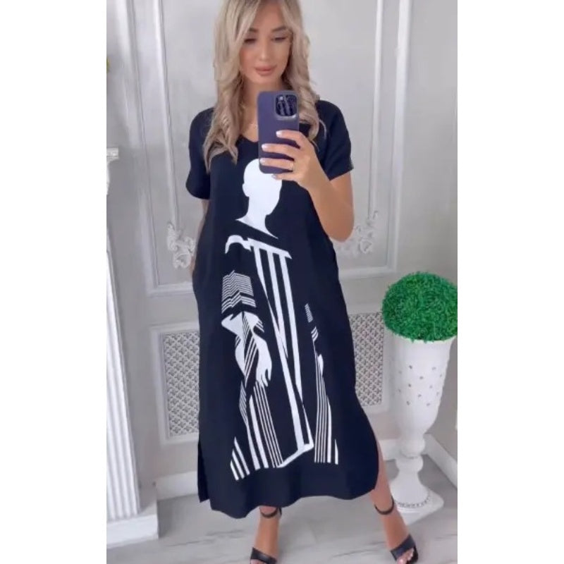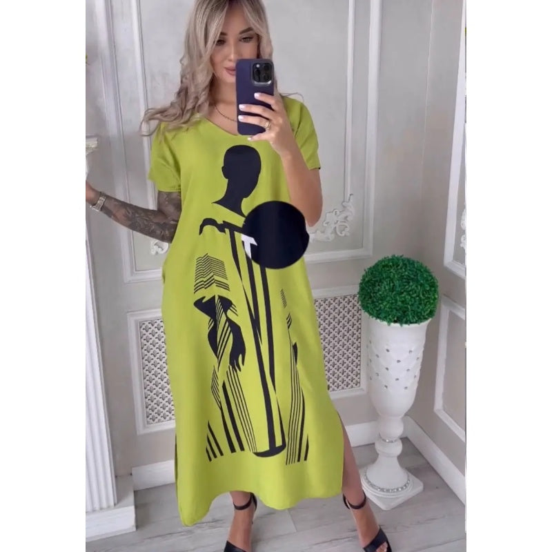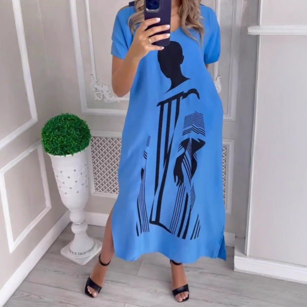 Пакетът включва: 1*Женска макси рокля с V-образно деколте, свободно прилягаща с разрез