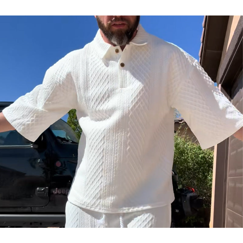 ДИШАЩА РИЗА С ЯКА: Тази риза с къс ръкав е с небрежен дизайн с яка и свободна кройка, идеална за топлото време, като същевременно поддържа изчистен и остър вид, идеален за ежедневни дейности или разходки.