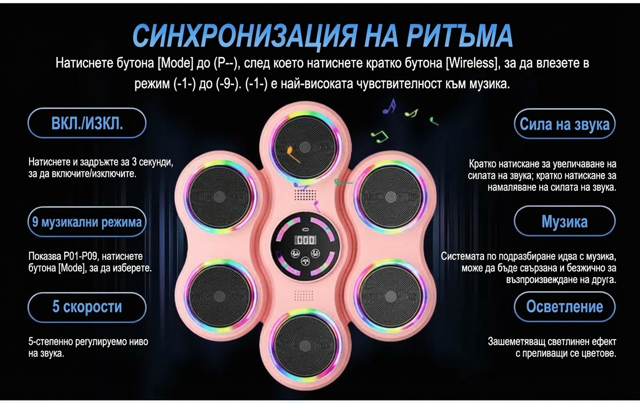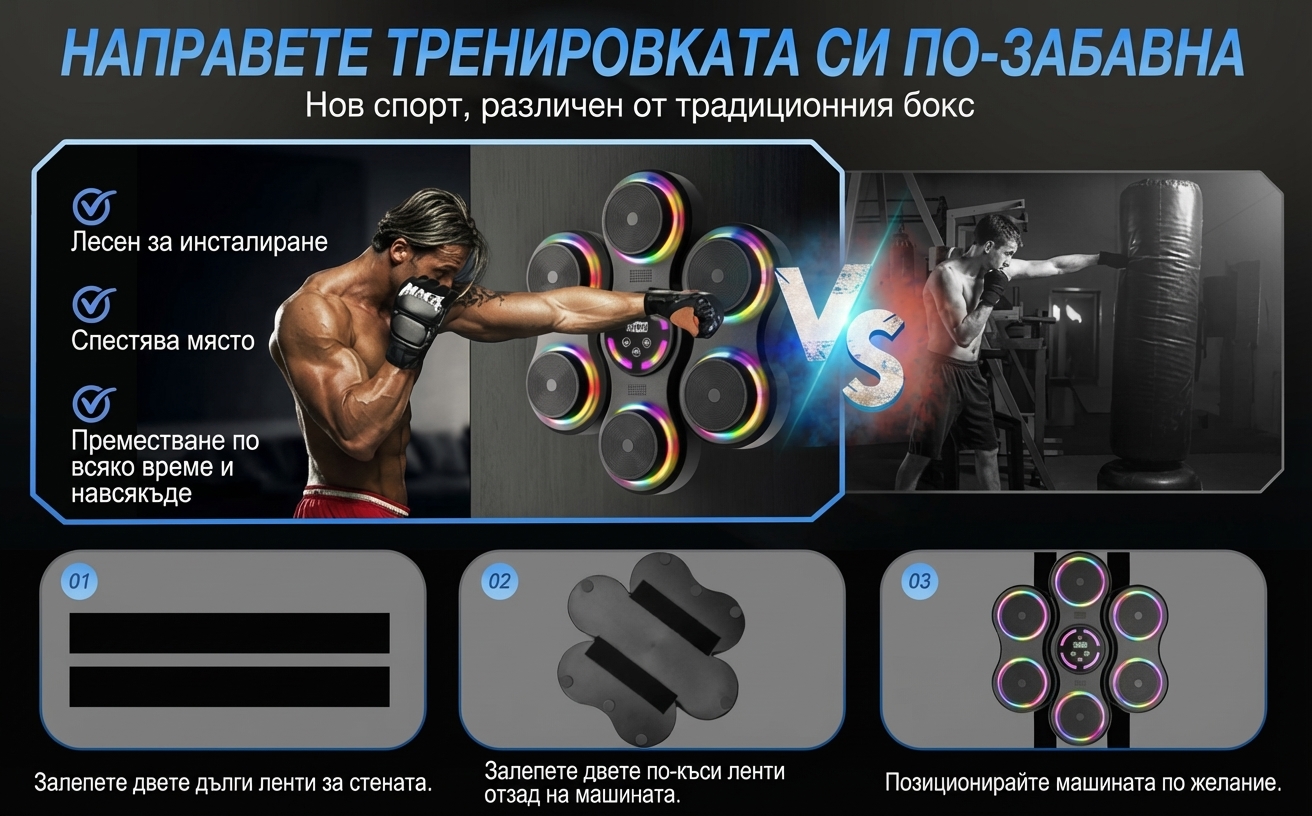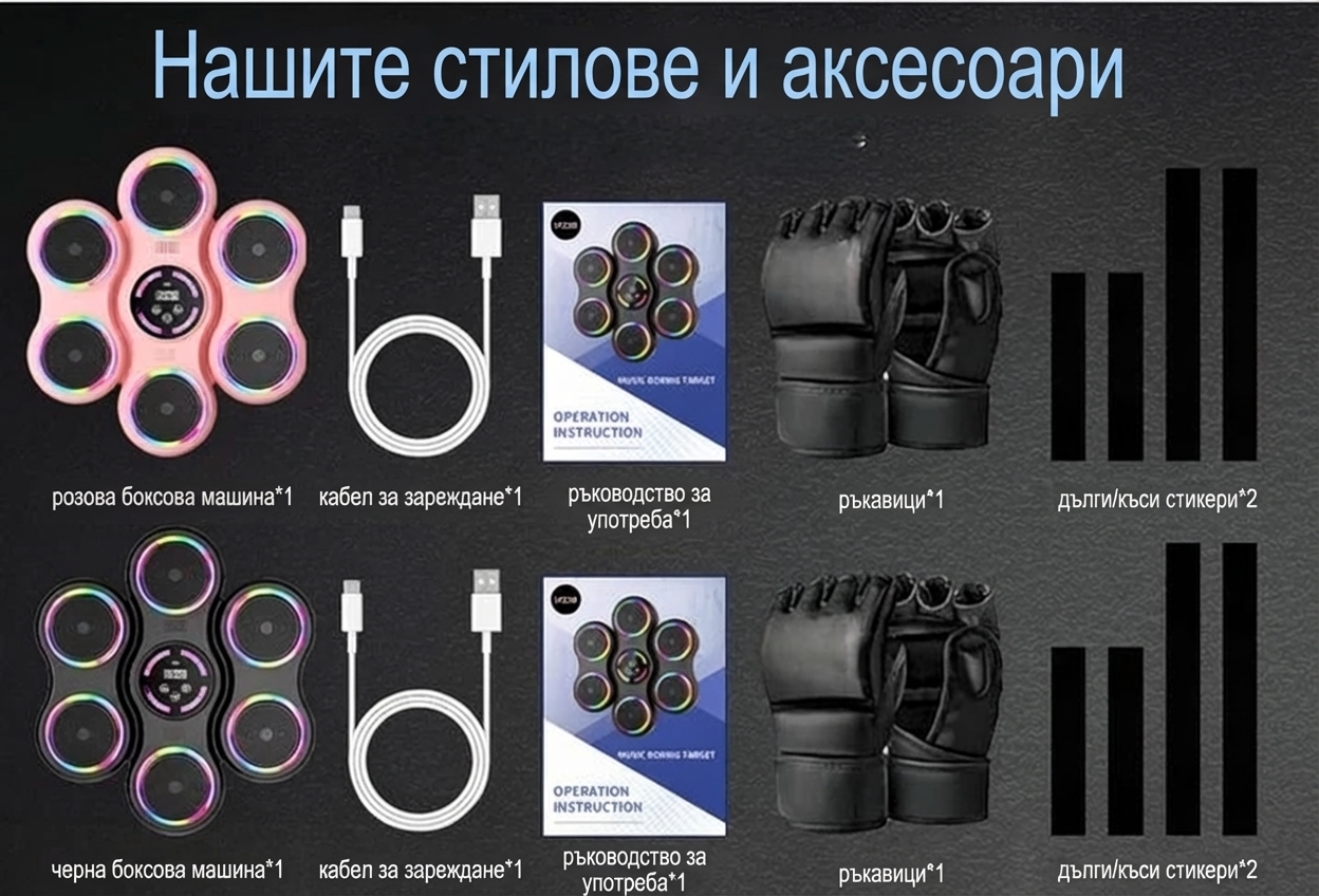 Включва: Боксови ръкавици, 4 EVA подложки, Велкро, USB кабел, Ръководство за употреба