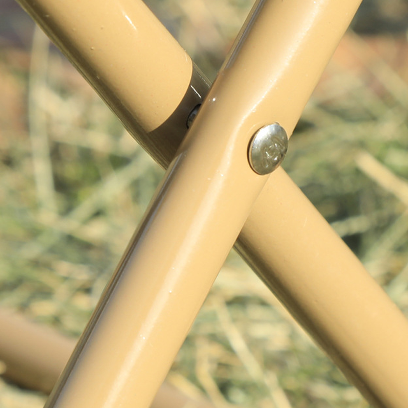 Изработена с подсилена Х-образна рамка от въглеродна стомана и двуслойна оксфордска тъкан с разширена повърхност на седалката, подобрен комфорт, без провисване дори след дълги седенки.