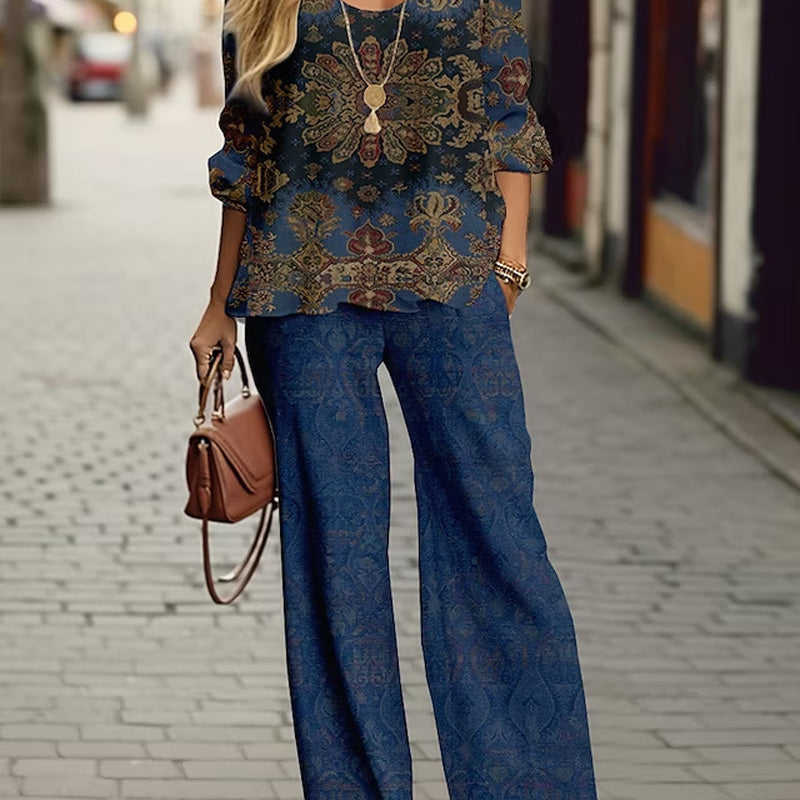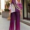 1* Комплект дамски мек ежедневен топ и панталони с широки крачоли